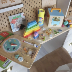 This rich educational box combines favorite Montessori activities into one well-thought-out set. Children will practice fine motor skills, patience, balance and concentration, as well as understanding numbers and weather. It also includes a brief parent guide with tips on when and how to introduce each activity into play.