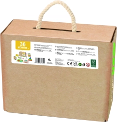 The safe wooden components from Tooky Toy are smoothly sanded and painted with non-toxic paints. Thanks to its varied activities, the set is perfect for learning at home, family fun, and as a gift for three-year-olds.