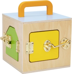 - Locking box with 3 different locks, 8 wooden stones, wooden weather board, counting set 1–10, Animals coloring book Level 1, 6 soft crayons, “I am 3 years old” booklet, parent guide