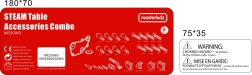 The perforated table surface allows for assembling various patterns and compositions. Additional accessories are stored in a practical side storage area.