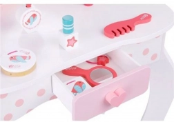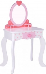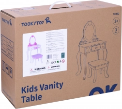 Children's vanity table by Tooky Toy is the perfect addition to any children's room. Made of high-quality wood and adorned with white and pink details, this set fulfills every little princess's dream.