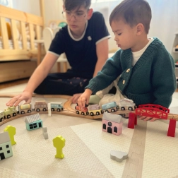 The wooden train and car set by Tooky Toy offers not only hours of fun but also supports the development of creativity and motor skills. Thanks to magnetic connections, children can easily change the train assembly and transport coal, gasoline or passengers. Each part is precisely crafted from quality wood and painted with non-toxic paints that are safe for children.