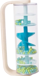 The rounded wooden handle fits perfectly in the hand. The toy can be shaken, tilted, and rotated 360° like a fun rattle.