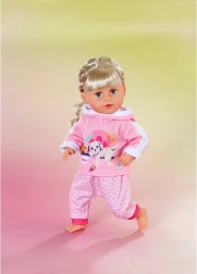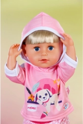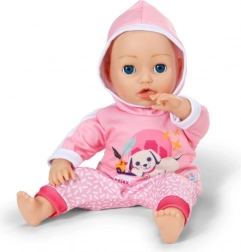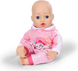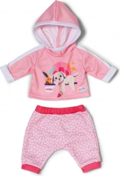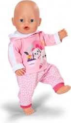 This pink tracksuit is a perfect addition to the wardrobe of BABY born 43 cm dolls and BABY born Teddy. The hoodie with a cute print of a relaxing puppy and the comfy pants with a delicate pattern ensure comfort on every adventure. Thanks to the thoughtful cut, the outfit is easy to put on and take off.
