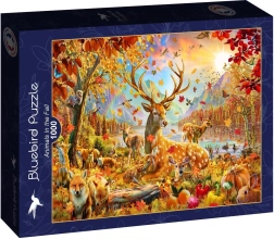 Discover the magic of autumn with the Bluebird Animals in Autumn puzzle. With 1000 carefully cut pieces, you’ll enjoy a pleasant challenge and relax at the same time. The finished image, measuring approx. 69 × 47.8 cm, is perfect for framing and will decorate your home.