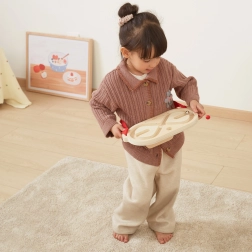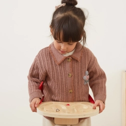 A lighter wooden ball and a heavier metal ball let you match the difficulty to the child’s skills and gradually increase the challenge.