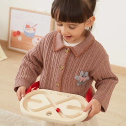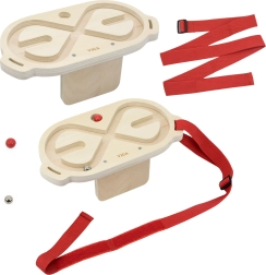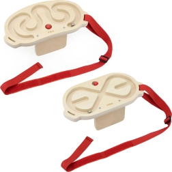 The set includes two high-quality wooden mazes with a smooth finish and two balls—a lighter wooden one and a heavier metal one—for different difficulty levels. Thanks to the adjustable straps (46–95 cm), you can fasten a maze to various parts of the body and train both balance and movement precision.