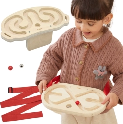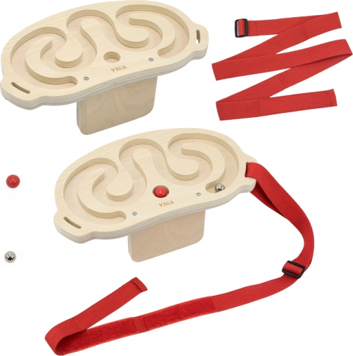 Interactive VIGA balance maze set turns movement into a fun game that develops coordination, balance, and motor skills. Two wooden mazes with balls of different weights and adjustable straps let you guide the ball by moving your body at the waist, chest, legs, or shoulders—solo or in a head-to-head challenge.