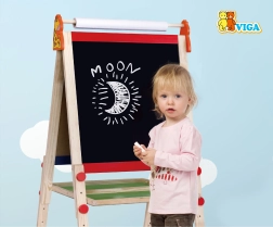 Boost children’s creativity with the Viga double-sided magnetic board – a chalkboard on one side and a white dry-erase surface on the other. A stable wooden stand, a paper roll for painting, and handy accessories included make it an ideal gift for young artists.