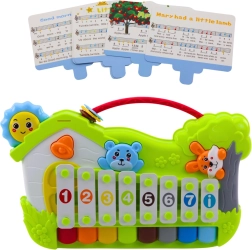 Thanks to the included 5 cards with notes and simple songs, kids learn step by step to play familiar melodies while practicing concentration, sound recognition, and developing musical hearing. Safe plastic materials, metal xylophone bars, and rounded edges provide comfortable and safe use from an early age.
