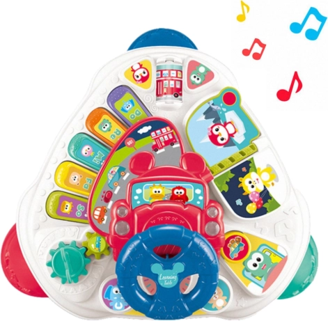 Interactive educational table with a steering wheel for child development with musical and light effects.