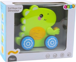 The set includes an interactive pull-along dinosaur on a string, three LR44 batteries, and a gift box.