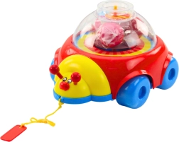 A cheerful pull-along ladybug for the little ones brings plenty of fun and learning. As it rolls, colorful balls spin under a transparent dome, and on top there is a rotating clock for a first introduction to time. Thanks to the pull cord, it supports first steps, coordination, and motor skills for children from 12 months.