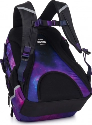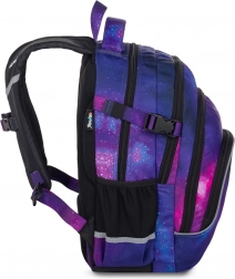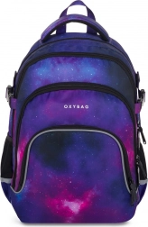 The lightweight and spacious school backpack OXYBAG Scooler Galaxy with three compartments, an organizer, and a laptop pocket offers perfect organization and comfort for students from the 3rd grade. It features anatomically shaped breathable back panel, adjustable straps with a chest belt, reflective elements for safety, and a waterproof reinforced bottom. Capacity 28 l, weight 780 g, load capacity 8 kg.