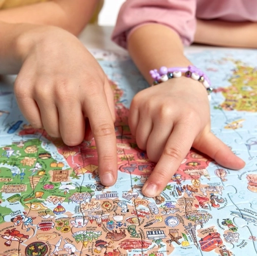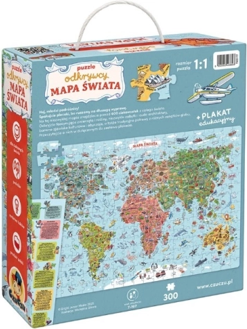 Discover the world through play! This educational puzzle featuring a world map with 300 pieces will delight children and adults alike. A large, colorful, and detailed illustration with over 600 fun facts encourages curiosity, learning through play, and quality time together. Perfect as a family puzzle, a gift for preschoolers and school-age kids, and an original room decoration once framed.