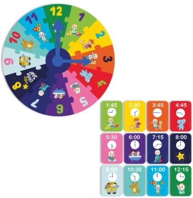 Playful clock puzzle with COCOMELON themes is an ideal tool for a first introduction to time. Children place the pieces into the correct slots, practicing finger motor skills, concentration, and logical thinking while reviewing colors and shapes.