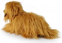 This adorable 32 cm plush Afghan Hound delights animal lovers with its realistic look and exceptionally soft fur. It is hand-sewn from high-quality plush and filled with material made from recycled PET bottles, making it not only beautifully soft but also eco‑friendly. Thanks to its realistic design, soft plush, and safe filling, it’s ideal for cuddling, play, or as a decoration in a child’s room.