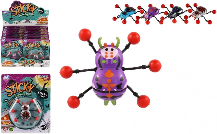 A fun climbing spider with adhesive leg tips that, thanks to a suction effect, sticks to smooth surfaces and realistically “climbs” on glass. An ideal toy for children from 3 years old, available in 4 color variants, with safe rounded ends and easy maintenance.