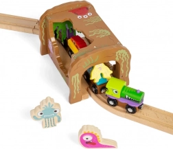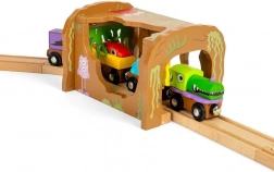 The tunnel is made from FSC®-certified wood, ensuring a sustainable material source. The finish uses non-toxic paints and lacquers that meet current European safety standards. Thanks to its standard size, the tunnel is easily compatible with popular wooden railways on the market.