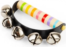 Discover the joy of rhythm with jingle bells that are ideal for early music education. The flexible strap with bells gently chimes with every movement and helps children sense tempo and simple rhythms. The wooden handle is pleasant to the touch and shaped for a child’s grip.