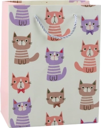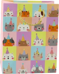 This cute gift bag with cat motifs is ideal for any occasion! It is crafted from high-quality paper and features a colorful design along with unique brocade elements that add brightness and extraordinary character. The cute cat motifs in pastel colors are sure to appeal to both children and adults.