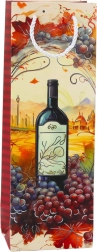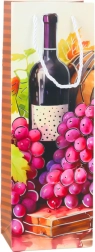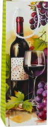 Colorful designs with wine bottles and grapes give the bag an elegant look.