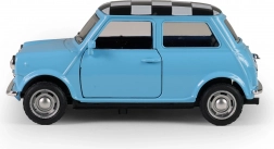 Chrome bumpers, a grille, and the iconic checkered roof give the model the faithful look of a classic Mini.