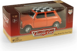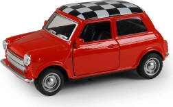 Discover the iconic Mini Cooper crafted in quality die-cast metal and plastic. Thanks to the pull-back motor, just pull and release—the car speeds forward. Detailed bodywork, chrome accents, and a checkered roof pattern underscore its collectible appeal.