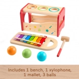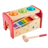 Fisher-Price Wooden Multifunctional Musical Toy offers two toys in one: a bench for playing the xylophone and a standalone xylophone to play with. Children can knock or push balls to hit the xylophone keys or take out the xylophone for separate play.