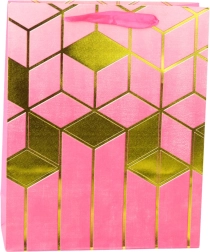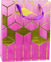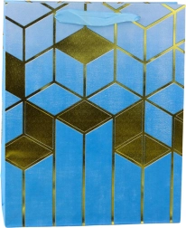 This elegant gift bag combines a modern design with practicality. It features striking gold geometric motifs and rich colors, making it a representative wrap for any gift. The sturdy decorative cardboard and durable cord handles ensure comfortable and safe carrying.