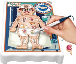 The fun dexterity game Mad Doctor by WOOPIE trains fine motor skills, patience, and concentration. Carefully remove organs from the patient's body with tweezers according to what the spinner shows – touching the edge makes it buzz and means a loss. An ideal game for children from 4 years and for two-player fun.
