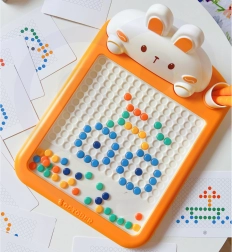 The set includes 70 magnetic pegs and 2 magnetic carrot-shaped pens, providing unlimited possibilities for creation.