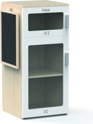 Enrich your child's play area with a beautiful Wooden Fridge Viga. This realistic toy is a great tool for developing imagination and creativity during pretend play. The fridge is equipped with two compartments - a freezer and a refrigerator, which allows children to imagine storing food at different temperatures. Additionally, the door features a chalkboard for jotting down shopping lists or drawing.