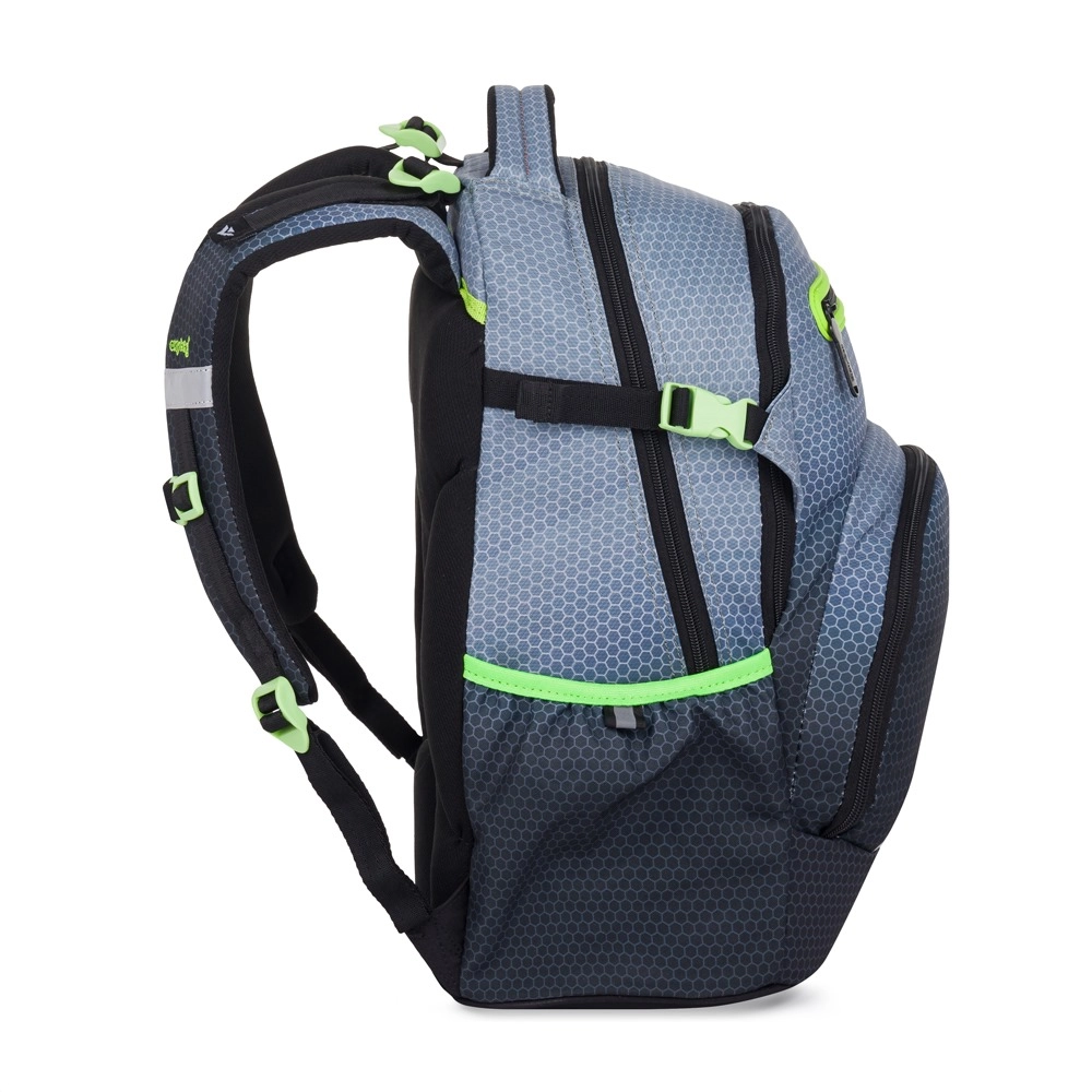 Modern and practical OXY Ombre school backpack in grey is an ideal choice for pupils from 3rd grade. With its modern ombre-style design, it stands out at first glance. It brings comfort and safety thanks to the anatomically shaped back panel, padded shoulder straps, and adjustable chest strap.