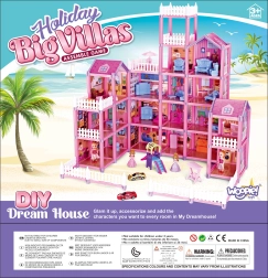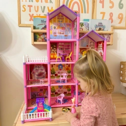 Discover a world of imagination with the WOOPIE Lovely House dollhouse. This spacious, multi-story villa offers different rooms, balconies, and roofs that invite realistic family-life scenes. Kids will enjoy both the building and the subsequent interior decorating using detailed furniture and accessories.