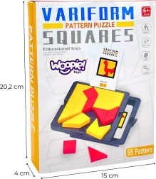 Tangram Pocket Logic Game by the brand WOOPIE is a game that supports observation skills and creativity. The goal is to arrange the available pieces according to patterns on the cards, which develops logical thinking and imagination.