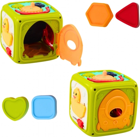 Colorful interactive educational cube is a great toy for children from 18 months of age. Each side offers a different way to play, which develops motor skills, logical thinking, visual-motor coordination, and cognitive abilities.