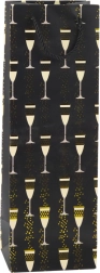 This gift bottle bag combines a representative look with functionality. The striking print of glasses and bubbles with gold accents gives every gift a festive touch — perfect for weddings, birthdays, anniversaries, New Year’s Eve, and corporate events. The universal size safely fits most standard bottles.