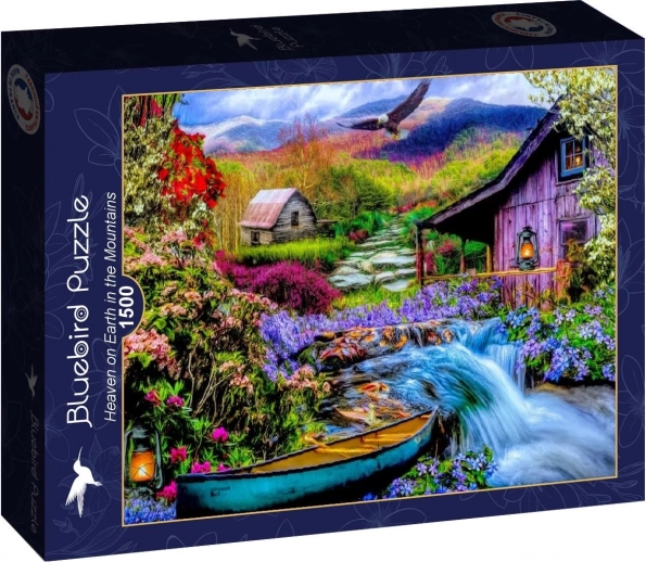 The Mountain Idyll Puzzle of 1500 pieces offers a beautiful mountain view, dimensions 85 x 61 cm.