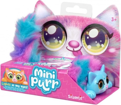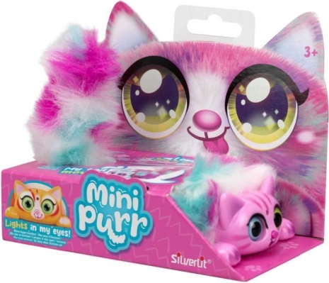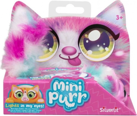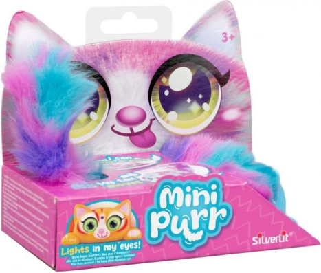 Discover the diverse colorful interactive kitten Mini Purrs, which lights up and purrs when stroked. It responds to blowing and manual tail movement.