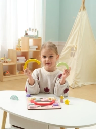 Discover the magic of a game that combines an insertion puzzle and a balancing game in one. It consists of a base and 14 insertion pieces. Let children test their patience and creativity by stacking colorful pieces on top of each other.