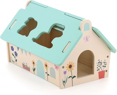 Vilac wooden sorting house develops dexterity and imagination, motivating children to learn with Montessori methods.