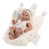 The NEW BORN girl doll by Llorens is an ideal choice for anyone looking for a quality and realistic toy. It is crafted with great care, noticeable in its individual details that mimic a real baby. Thanks to its vinyl body, the doll can be bathed, but care should be taken not to wet the lashes.