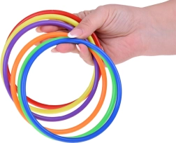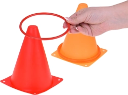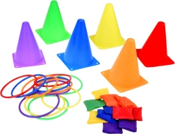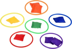This play set is ideal for children who love spending time actively. It includes six colorful cones, twelve fabric bags and twelve plastic hoops, allowing for various types of games. Children can improve their coordination and accuracy when throwing and aiming.