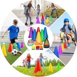 This set includes cones and hoops in vibrant colors that capture attention and ensure fun while playing. They are excellent for marking playgrounds or stations.