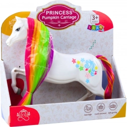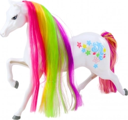 This wonderful white horse is the dream of every little fairy tale lover. With a long, rainbow mane and a multicolored tail, it is the ideal toy for children aged 3 and up. The magic is completed by gentle decorations and pastel colors, which will enchant every child.