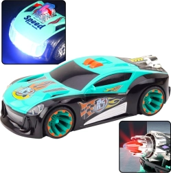The racing car is equipped with two functional buttons. The first button triggers a spectacular acceleration with the lifting of the car's front, creating the effect of riding on two rear wheels, and simultaneously activates the turbo function, adding dynamics.