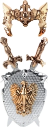 The children's knight set was designed with exceptional attention to detail. Richly decorated handles, shiny surfaces, and structural patterns allow children to transport themselves to the times of knightly duels. It's a toy that not only delights the eye but also stimulates imagination to create their own stories.
