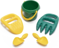 - The set includes 2 shovels, 2 pairs of rakes, and a bucket.