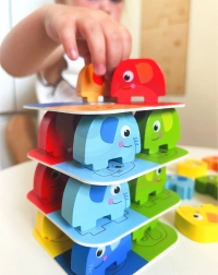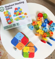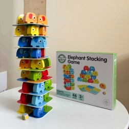 Experience fun and adventure with the Elephant on Elephant game by Woopie. This game includes 46 pieces, including colorful blocks and playing cards. It's ideal for spending quality time with the family. Vibrant colors and cute shapes attract attention and offer two fascinating game options - as a stacking game or a Jenga alternative.
